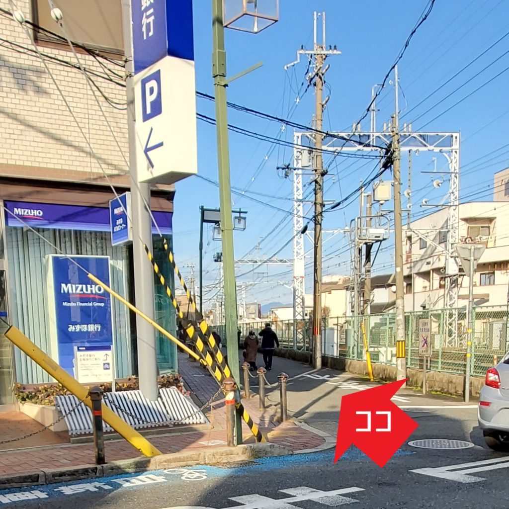 西出口を出て右側に行くと、みずほ銀行が見えます。