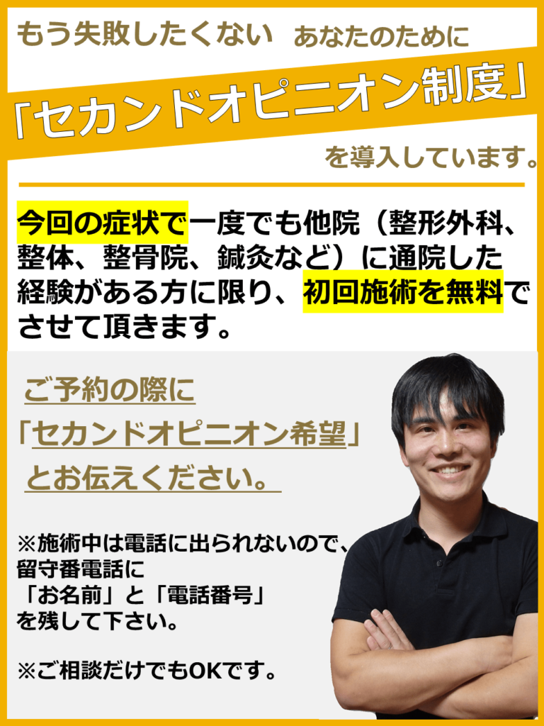 何となく治る気がしなかったので、近所のいとう整体院さんにお世話になる事にしました。しっかりと身体の状態を説明してくれたので、納得して治療を受けられました。