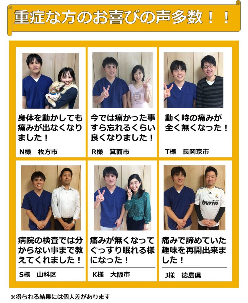 痛みが酷い時は、朝方痛みで目が覚めていましたが、今では、朝方痛みで目が覚める事がないので本当に嬉しいです。