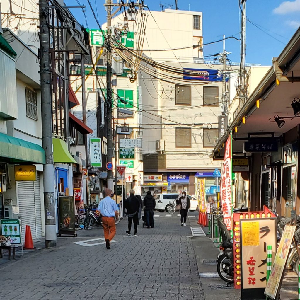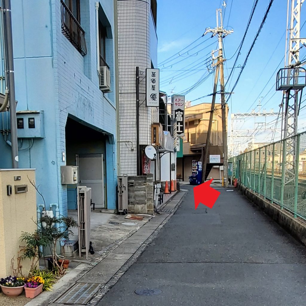 道路を渡り、みずほ銀行と線路の間の路地に入ります。