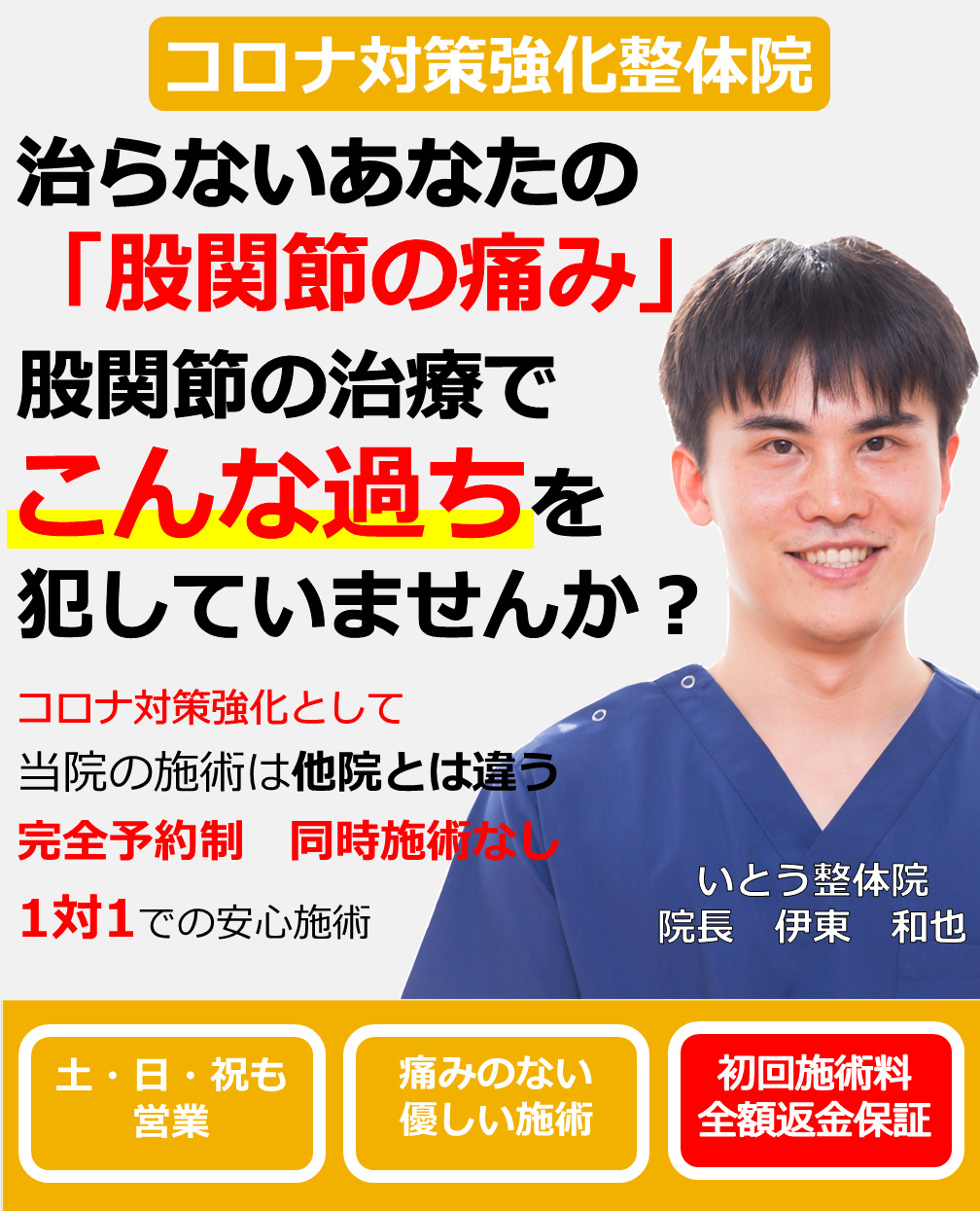 自信があるからの返金保証です。私があなたの股関節痛を全力で改善して見せます!!